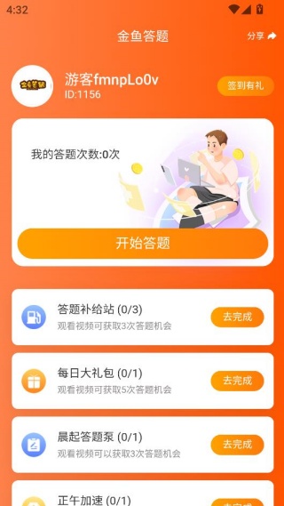 金鱼答题app是一款在线答题的学习神器,以趣味答题为核心,巧妙融合了学习与娱乐的精髓,让知识的获取变得既轻松又充满乐趣,只需轻触屏幕,进入首页,点击那醒目的开始答题按钮,一场智慧与速度的较量便即刻拉开帷幕,不仅如此app还精心准备了每日签到与任务完成大礼包,让学习之路不仅充实,更添惊喜与期待。
