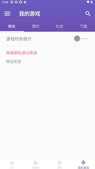 3、来到软件我的游戏页面,可查看拥有、预约、礼包、下载等游戏。