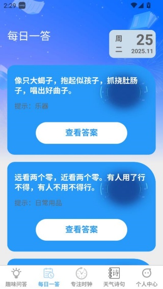 4、专属时钟板块,不仅记录时间的流转,更融入问答元素,让每一刻的流逝都充满智慧的韵味。