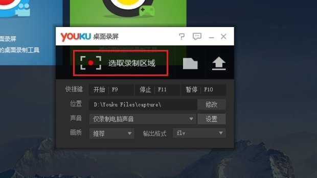 选择它之后,屏幕上会出现一个录屏功能的控制条。在正式开始录制之前,你需要先设定好录制的范围,点击“选取录制区域”这个按钮。