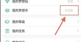 2、进入【我的梦想币】界面后,你会看到一个【兑换梦想币】的按钮,点击它。