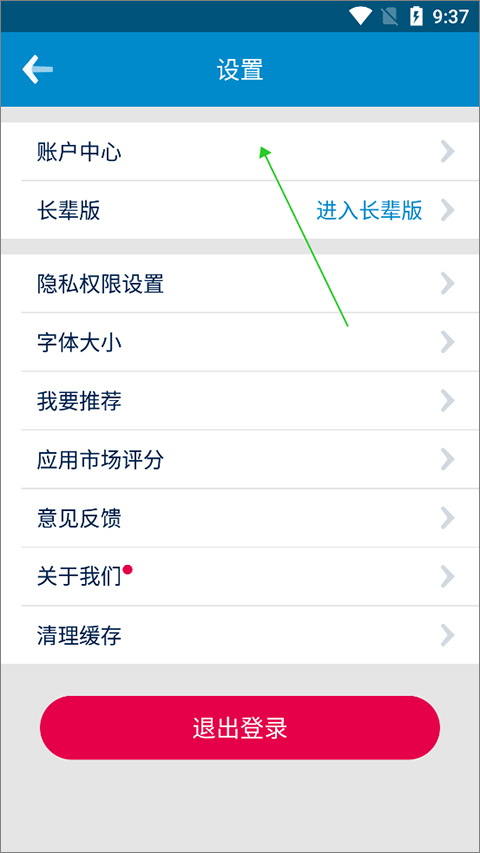 2、进入设置页面后,在列表中选择并点击“账户中心”这一项。