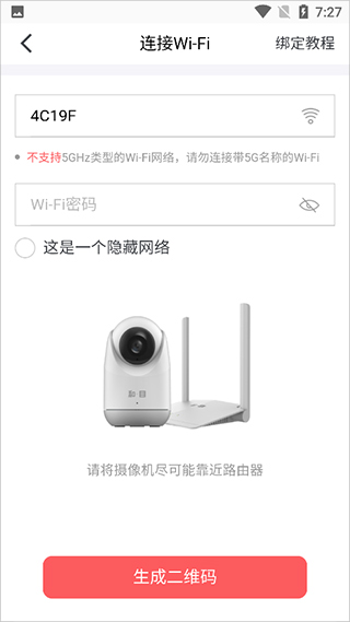 3、目前和目摄像头支持的是802.11 b/g/n协议的2.4G频段WiFi,尚不支持5G频段的WiFi。请确保你的无线路由器设置正确,并且摄像头在WiFi信号的有效覆盖范围内。