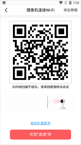 5、二维码生成后,将手机屏幕对准摄像头的镜头,让它扫描这个二维码,设备就会开始自动连接网络。