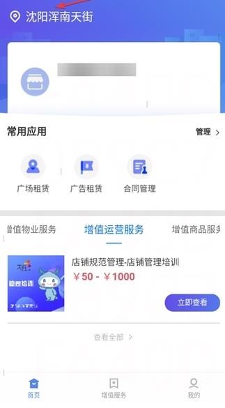 3、当你的位置信息确认无误后,就可以回到主界面,浏览所有可用的功能了。这里的功能琳琅满目,你可以根据自己的实际需要,选择相应的服务,比如我们这里以“广场租赁”为例。