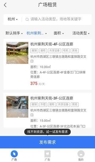 4、点击进入广场租赁这个版块之后,系统会展示出所有可供选择的场地资源。你可以慢慢浏览,如果看到哪个广场让你眼前一亮,直接点进去就能看到关于它的详细资料了。