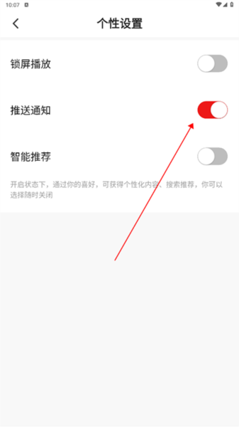 4、在“个性设置”页面中,你就能看到“推送通知”的开关了,直接点击把它关闭就可以了。