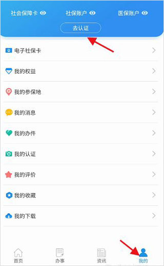 1、打开并成功登录最新版的“四川人社”App,点击右下角的“我的”,然后选择“我的认证”进入。