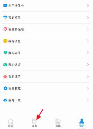 3、完成认证后,回到App主界面,点击左下方的“办事”功能入口。