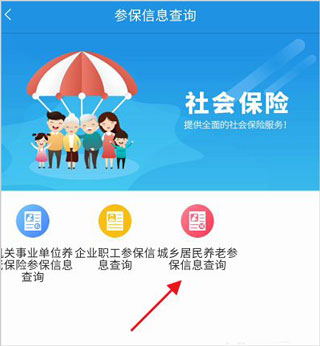 5、进入查询页面后,选择“城乡居民养老参保信息查询”,接着按要求输入相关信息,就能查到你的养老金参保状况了。