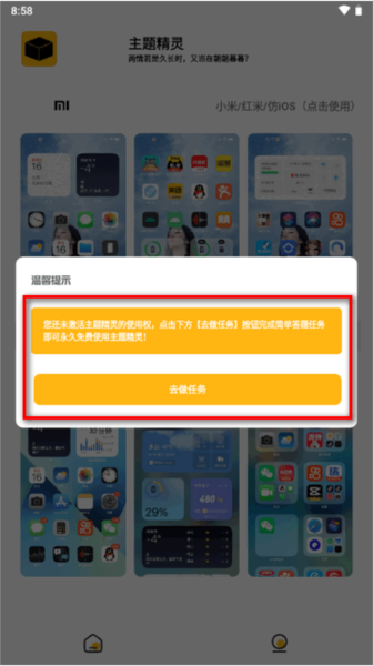 3、这款主题需要先激活才能正常应用,请在界面上找到并点击“去做任务”按钮。