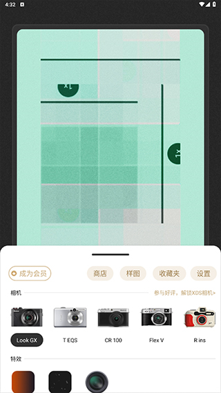 2、轻点屏幕左下角的相机图标,接着就可以根据自己的审美偏好,滑动挑选一款你心仪的相机风格了。