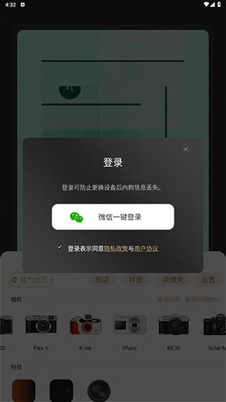 3、需要注意的是,部分人气比较高的相机滤镜是会员专属的,这时候需要你通过微信授权来快速绑定并登录账号。