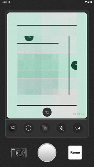 5、此外,在拍摄界面上,你还能找到实况拍摄、闪光灯控制以及调整照片画幅比例等多种实用的辅助功能。
