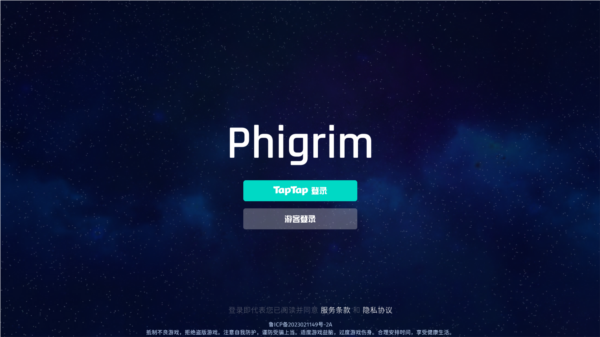 1. 进去先选登录方式,TapTap或者游客。iOS那边多个PhiZone登录。提醒一句,用游客登录的话,在线谱面社区是用不了的,成绩也没法传到云端,等于白打。