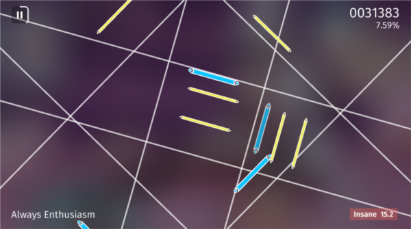 - 按键大小只影响视觉上Note有多大,不会改变实际的判定范围。所有按键的判定区都是显示大小的1.2倍。这玩意儿调太大容易导致你以为按到了结果是擦边,调太小又容易戳到旁边的Note,都影响手感。