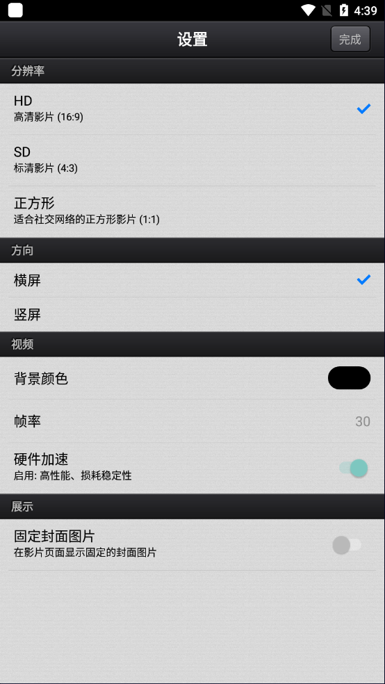 点完之后会跳到这个设置界面,你可以在这里把视频的分辨率、横屏还是竖屏、背景颜色这些基础参数都定好。