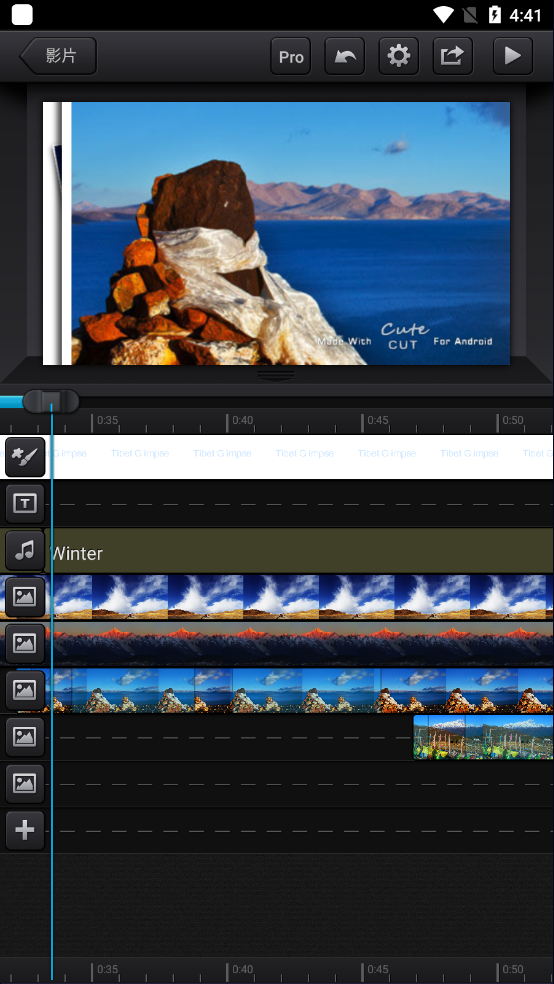 5、轻松创建PIP(画中画)电影:只需将一部电影放在另一部电影上;Cute CUT甚至支持每个视频片段的独立大小调整