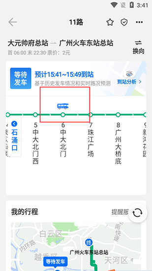 3. 创新的到站分析服务:这个有点意思。特别是在始发站或者线路前几站等车,地图上经常一辆车都看不到,心里特没谱。它会根据历史数据给你估算出大概的发车时间,让你不至于白等。