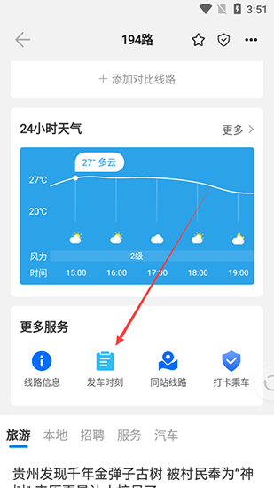 2. 往下拉之后会看到一个叫“更多服务”的区域,在里面找到“发车时刻”这几个字,点进去。