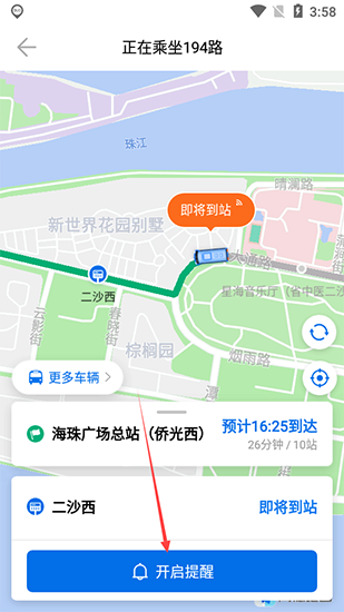 3. 当你看到【下车提醒】这个按钮变成点亮的状态,就说明下车提醒已经成功开启了。