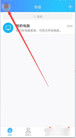 先进到你的手机QQ,登录上去之后,直接点左上角你自己的头像,就是红色箭头指的那个地方。