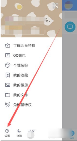 点完头像会弹出来一个侧边栏,在这个界面里找到“设置”并点进去。