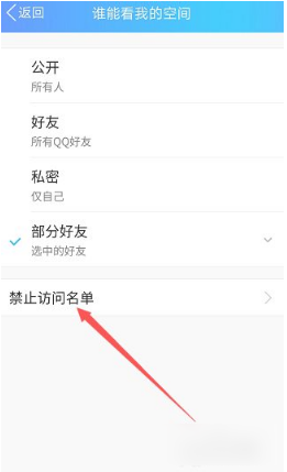 在这里你可以直接选公开或者私密,如果想屏蔽特定的人,就点下面的“禁止访问名单”。