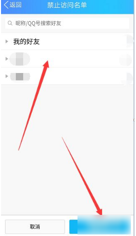进到黑名单设置界面后,点“添加好友”,然后从你的列表里勾选那些你不想让他看空间的人,操作完了别忘了点“确定”。