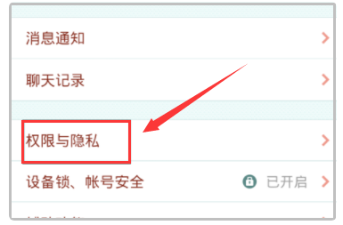 3、跳转到设置页面后,选择“权限与隐私”这一项。