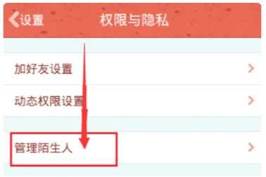 4、进入这个选项后,在页面里找到“管理陌生人”的选项。