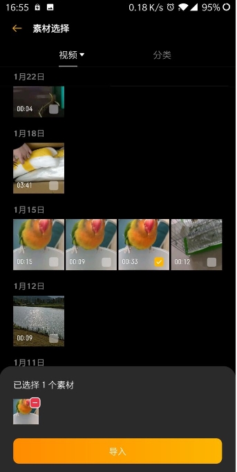1、先把要剪的视频素材导进去,可以选一个也可以选好几个,点导入就行。