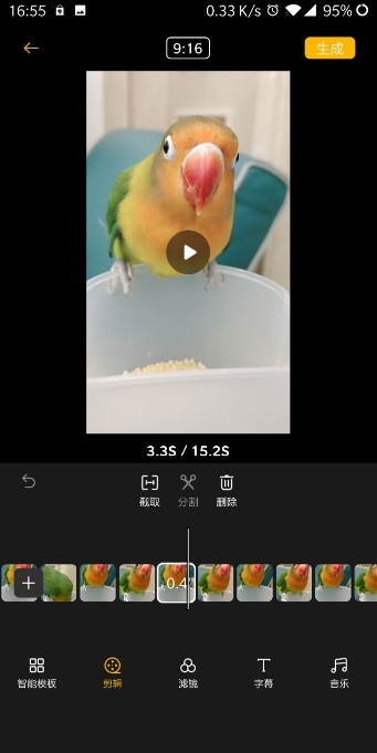 4、全部搞定后,点击生成,稍微等它处理一下,视频就做好了。对了,还能一键分享到朋友圈或者小红书,特别方便。