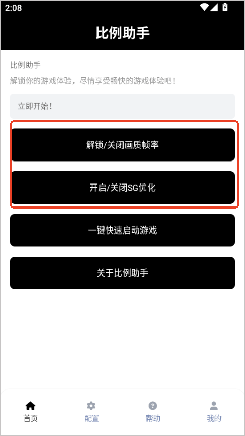1、东西下好装完,打开就是主界面。上来就能直接点那几个大按钮,什么解锁画质帧率、开SG优化的,都摆在最显眼的地方。看下面这张截图,一目了然。