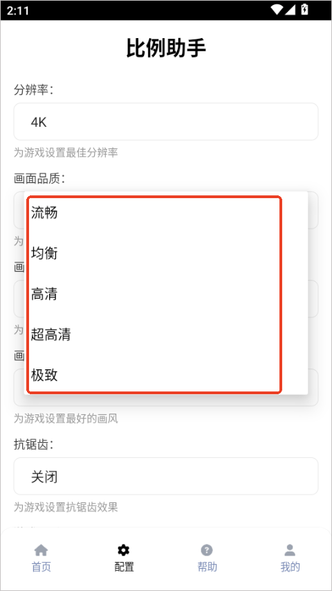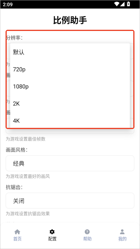 2、分辨率也能自己调,720p、1080p一直到4k,看你手机屏幕和性能自己选。