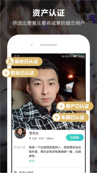 它这个实名制玩得特别认真,视频、学历、工作、车房都能认证,就是为了把那些婚托、酒托之类的牛鬼蛇神都挡在门外,给你创造一个能放心交朋友的环境。