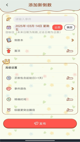 3、同时,你也能用这个软件创建倒数日来记录事情,点击记录不同事件,填好信息就能保存。