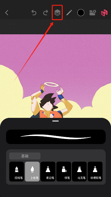 4、图层功能在顶部,点一下就能调整编辑,玩板绘的都懂,这是核心功能。界面都在这图里了。