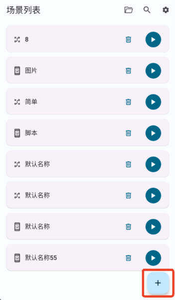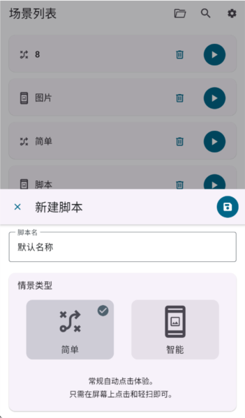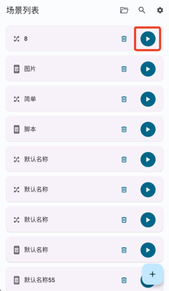 5、保存完之后,在场景列表里就能看到你刚创建的脚本啦。点右边的开始按钮就能运行。智能模式也是一样的操作流程,保存好就会出现在列表里。