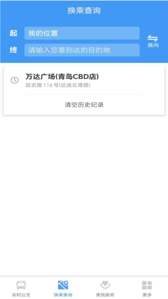 3、如果要去的目的地比较远需要倒车,就点开换乘查询,输入起点和终点,让它帮你规划路线。