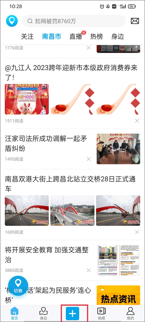 (1)你看APP最下面那一排,有首页、身边、发布、视频和我的这五个按钮,你就点最中间那个带“+”号的发布按钮。