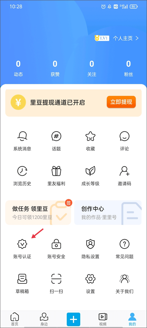 (1)还是在底部菜单栏,这次我们点最右边的【我的】。这个界面功能挺多的,能看你的浏览历史、等级什么的,咱们找到“账号认证”这个选项,点进去。
