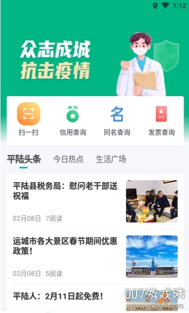 智慧平陆最新版是专为山西省平陆县的当地居民打造的一个本地生活综合服务平台,这里为大家提供了非常全面的服务,包括信用查询、同名查询、发票查询等等,同时用户还可以在这里了解最及时最权威的新闻资讯。