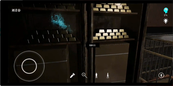 1、左侧轮盘操控角色在场景内移动,仔细探查各个物体找寻信息。