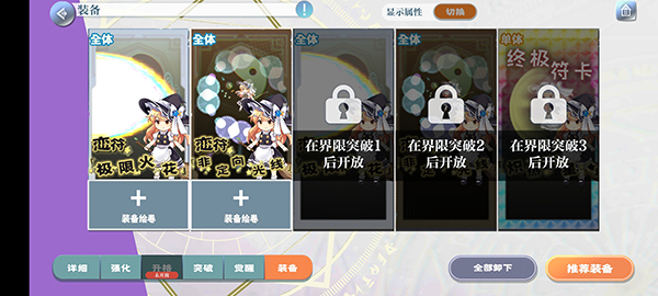 当你辛辛苦苦把一张绘卷强化到满级后,就得先给它做个“界限突破”,才能继续往上强化。界限突破同样要消耗赛钱,而且最关键的是,你还需要一张一模一样的绘卷作为材料,才能完成升级。所以,当你好不容易抽到一张高星级的绘卷时,记得先去绘卷页面把它“解锁”,这样它才能被当成材料,用来给另一张相同的卡片进行界限突破哦。
