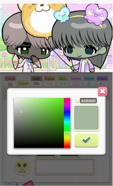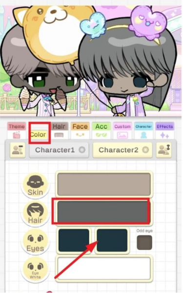 3、接下来,把目光移到【color】选项上,这里就是调色板啦。你可以随心所欲地定义角色的肤色、发色和瞳孔颜色。
