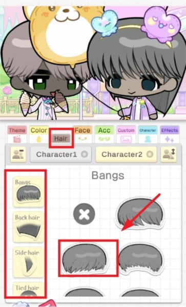 4、然后点击旁边的【hair】,这里是发型沙龙。长发、短发、卷发、直发,各种造型任你挑选,看看哪个最适合你的角色。