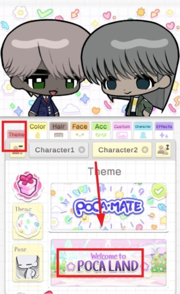 2、进入主界面后,先别急,找到一个叫【theme】的选项,点进去,然后选择【POCALAND】,这是主要的创作场景。