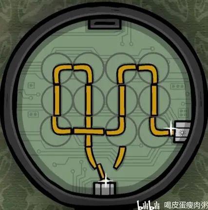 把圆形钥匙塞进地球仪,打开后跟前一章玩法一样,走迷宫。路线看下面这张图,走完会出现一个大脑,点进去是个简化版的塔防小游戏。