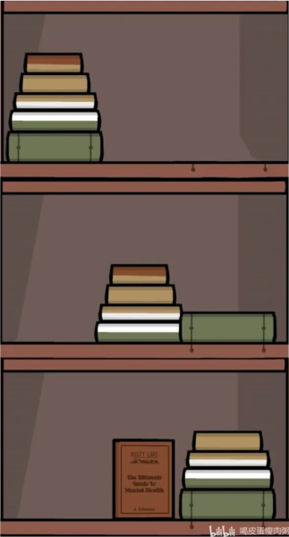 用这把钥匙去开书柜上半部分的门。第一层是些标本罐,后面要往里塞东西。第二层是几本书,玩法类似汉诺塔,大书不能放小书上面,一次只能动一本,目标是把所有书按大小顺序挪到最右边。主要步骤看下面这张图,别搞错了。